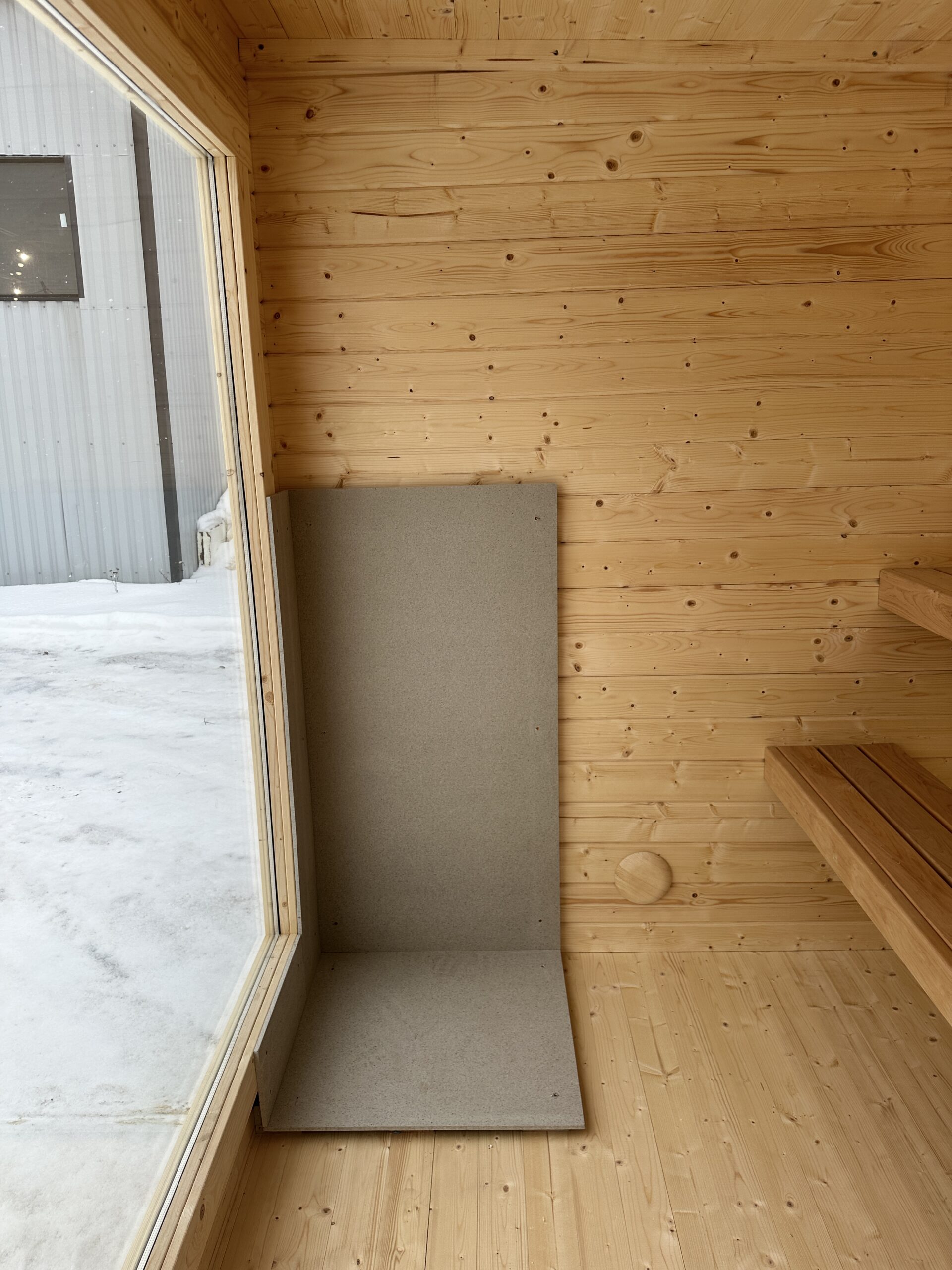 A cubic, hand-crafted Nordic sauna built from solid Nordic spruce—clean, modern design without compromising the authentic sauna experience. With its 200 × 200 cm footprint, NORD QBE offers generous space and a strong architectural presence that blends seamlessly into Nordic nature and minimalist settings. The large panoramic window opens the space to its surroundings, allowing natural light to interact with the wood even while you relax in the heat.
